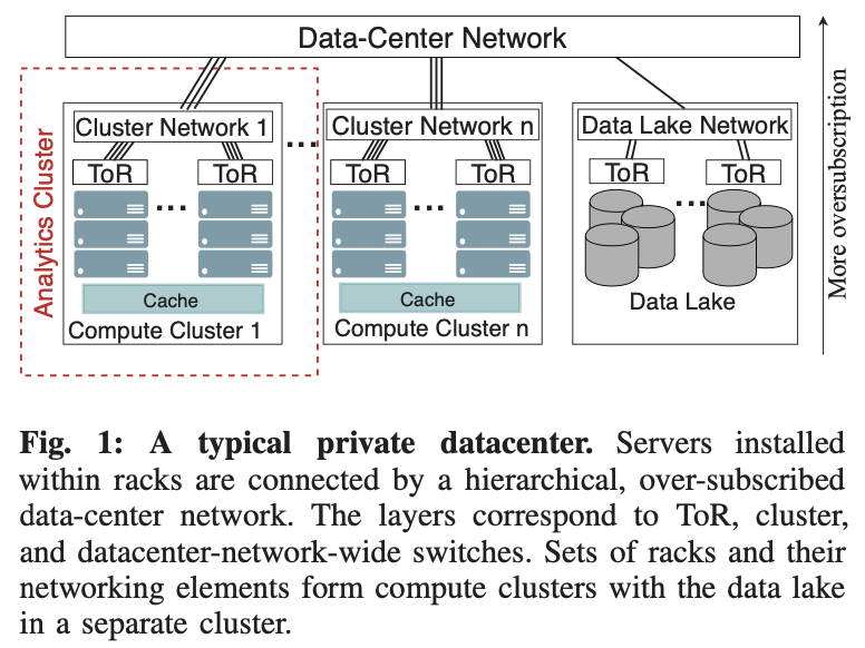- large network imbalances due to over-subscription and incremental networking upgrades 但是实际上整个网络架构并不如理想,over-subscription(比如 input 带宽加起来其实比 output 链路的能力要大很多,但是 networking 会假设 input 不容易全用满)以及网络可能不断加入新的输入(也是说 input 会越来越大 “organic growth”)