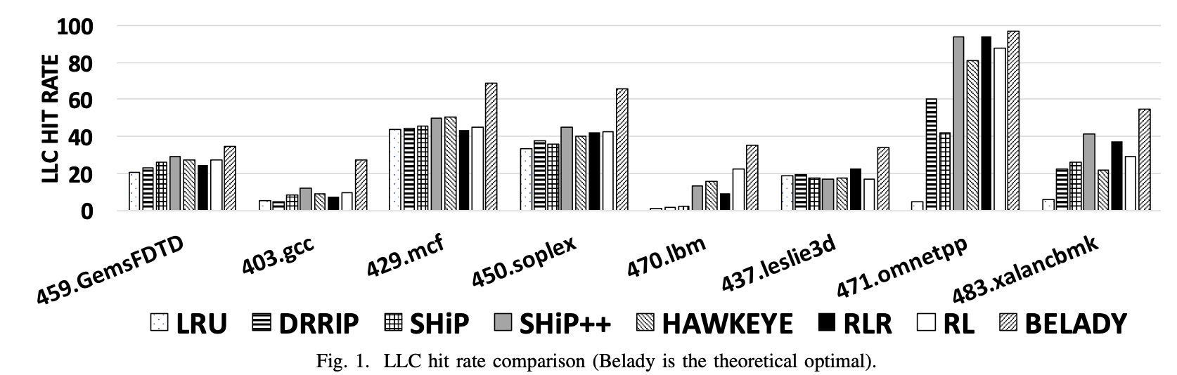 Guided by ML, we frame a cost-effective cache replacement policy – Reinforcement Learned Replacement (RLR). Overall, RLR does not require heavy modification to the CPU microarchitecture and out- performs LRU and DRRIP for most evaluated benchmarks.